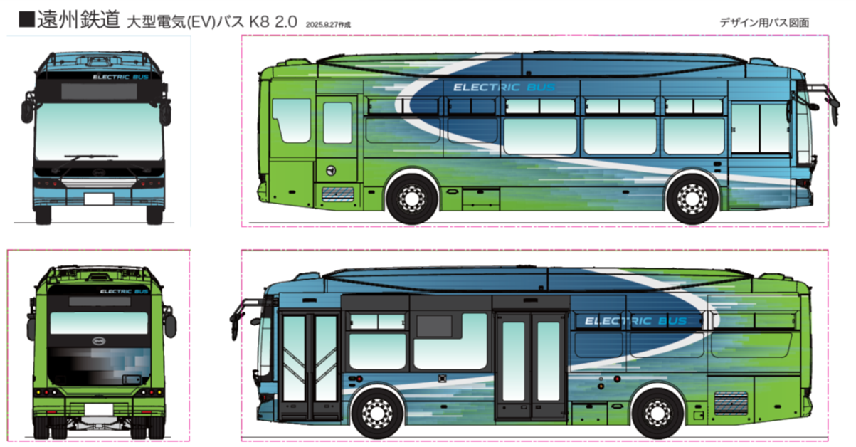 EVバスの導入に伴い、その外観デザインについては、遠州鉄道が地域の皆様に公共交通や脱炭素をより身近に感じていただけるよう、静岡文化芸術大学の学生を対象にコンペ形式で募集し、社内審査を経て決定いたしました。コンセプトは、 EV バスの「未来感」と、同社が 80 年以上培ってきた「遠鉄バスらしさ」です。