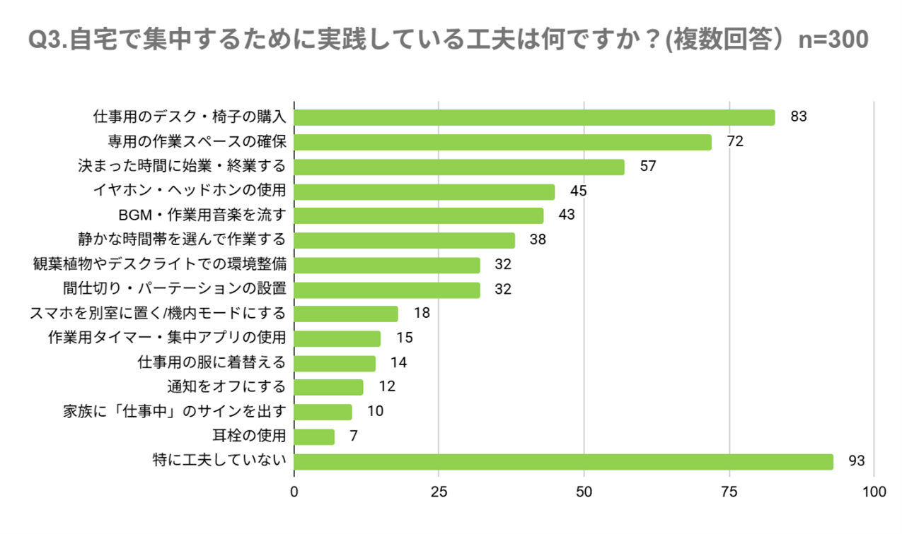 Q3: 自宅で集中するために実践している工夫は何ですか?(複数回答)