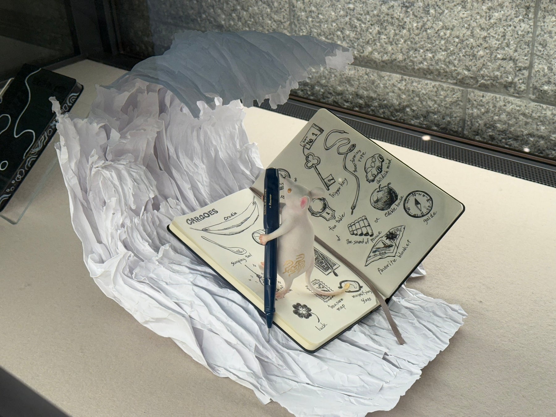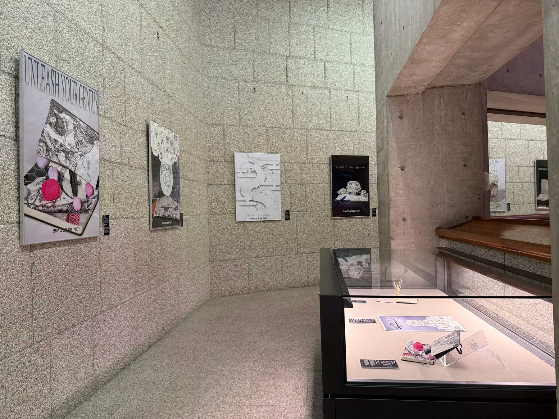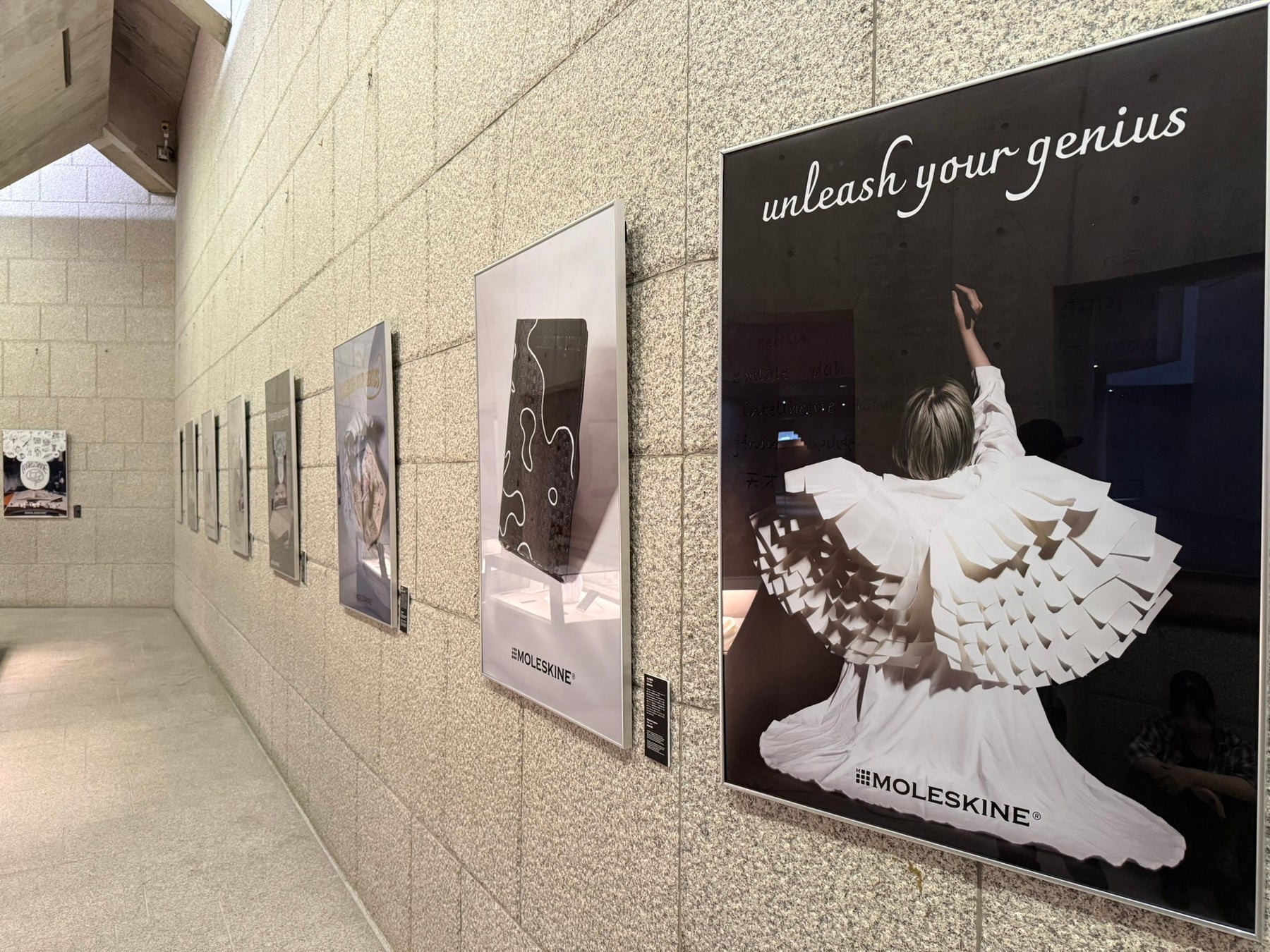 今回展示する受賞作品は、大阪・関西万博イタリア館で国際的に展示されたほか、全国のモレスキン直営店で巡回展示されるなど、大きな注目を集めました。本特別展では大阪・関西万博イタリア館でも展示されていた最優秀賞、優秀賞2点の3作品と、⽇本国内のモレスキン直営店にて展⽰された7作品のポスターおよび、モレスキンのノートをアート作品として創作した作品を特別展⽰します。