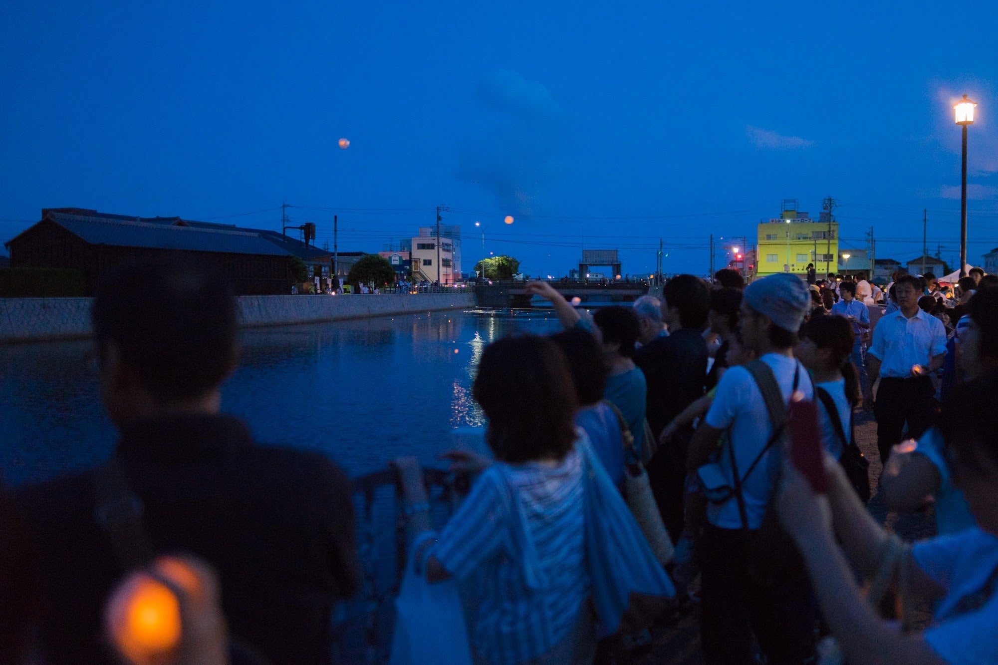 半田運河の水面に「ヒカリノ玉」を投げ入れて、来場者が一体となって幻想的な空間を作り出す人気企画「ミズノヒカリ」は、今年は事前予約制での開催。投げ入れの場所を分散させながらエリア全体でヒカリノ玉が水面にぷかぷかと浮かぶ光景を来場者とともに作り出します。