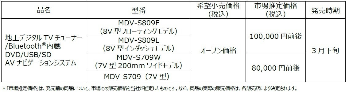 AVナビゲーションシステム“彩速ナビ”「MDV-S809F」ほか計4モデルを発売