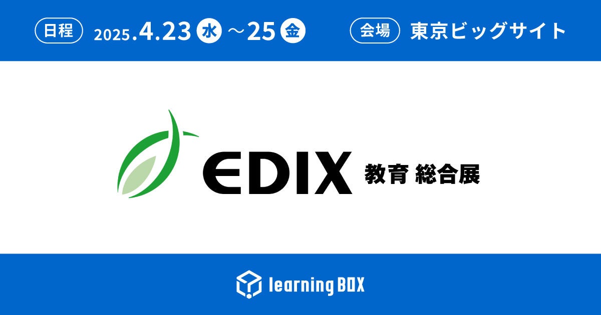 【learningBOX】4月23日(水)~25日(金)に開催される「第16回 EDIX(教育 総合展)東京」に出展 @東京ビッグサイト