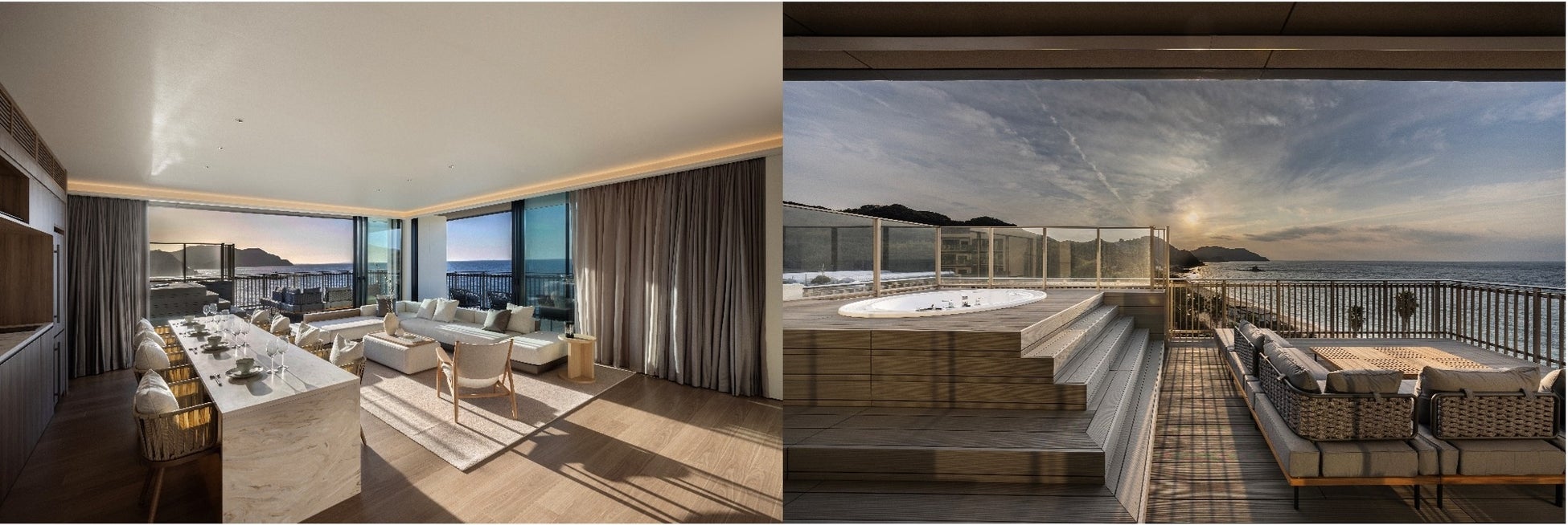 グランドオープンにあわせ、ルーフトップテラスやジャグジーなどを備えた開放感あふれる6タイプ・計9部屋のスイートルームのご予約がスタートいたします。スイートルームは全室各棟の最上階に位置し、部屋タイプによってルーフトップテラス、ジャグジー、海を眺めながら入浴いただけるビューバス、BBQコンロ(有料)などを備えています。(以下の画像は客室6タイプから4タイプを抜粋)
