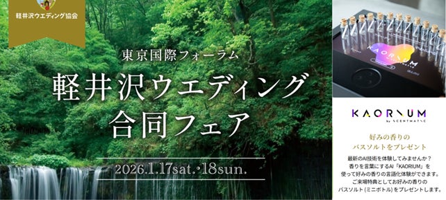 嗅覚のデジタライゼーションによって新たな顧客体験を提案するSCENTMATIC株式会社(代表取締役:栗栖俊治、本社:東京都、以下「セントマティック」)は、2026年1月17日(土)・18日(日)に東京国際フォーラムで開催される「軽井沢ウエディング合同フェア2026」において、香りを言語化するAI「KAORIUM(カオリウム)」の体験ブースを用意し、診断結果をもとに導き出した特製バスソルトをプレゼントします。