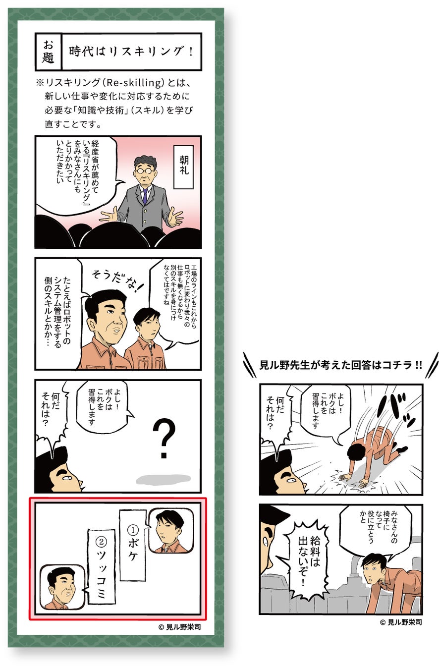 募集内容 :お題漫画「時代はリスキリング!」のオチとなるセリフの募集
