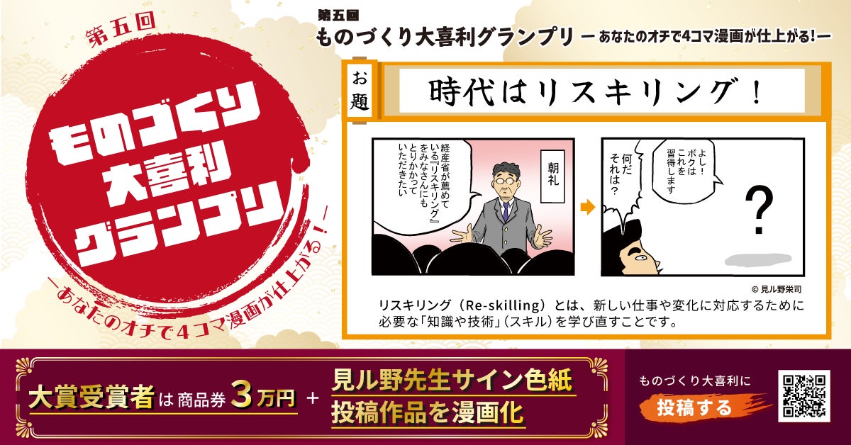 株式会社テクノア(本社:岐阜県岐阜市、代表取締役:山﨑 耕治)は、2025年7月1日(火)より、公募イベント『第五回ものづくり大喜利グランプリ~あなたのオチで4コマ漫画が仕上がる!~』(以下、ものづくり大喜利GP)を開催します。
