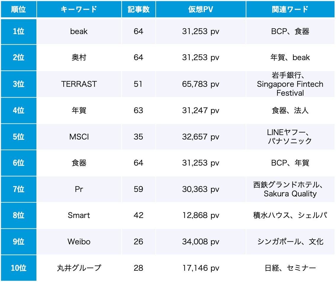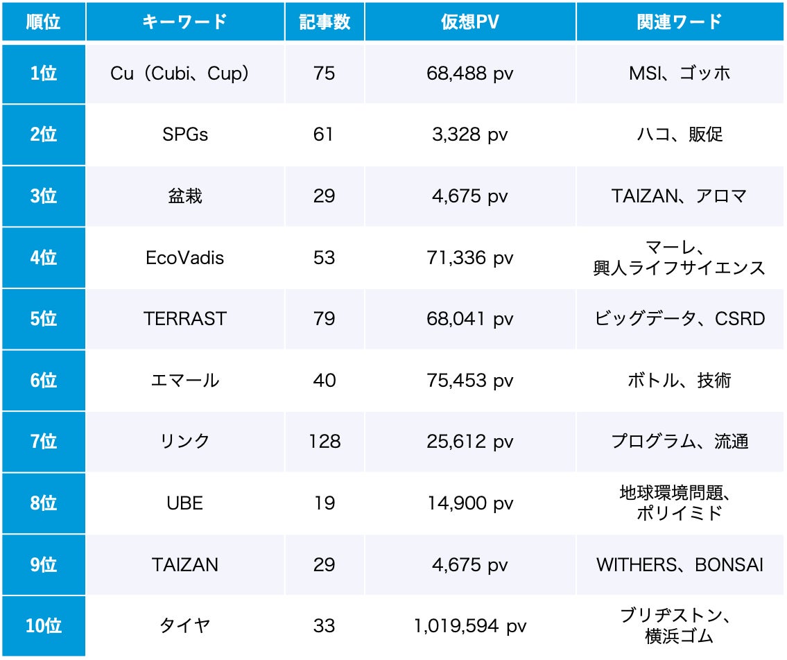 10位は「ジャパンモビリティショー」開催により、自動車のタイヤに関するニュースが集中したことを反映しています。