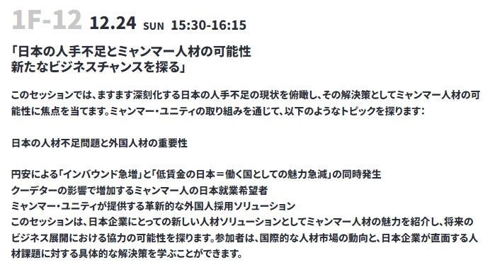 セッションテーマは『日本の人手不足とミャンマー人材の可能性:新たなビジネスチャンスを探る』です。