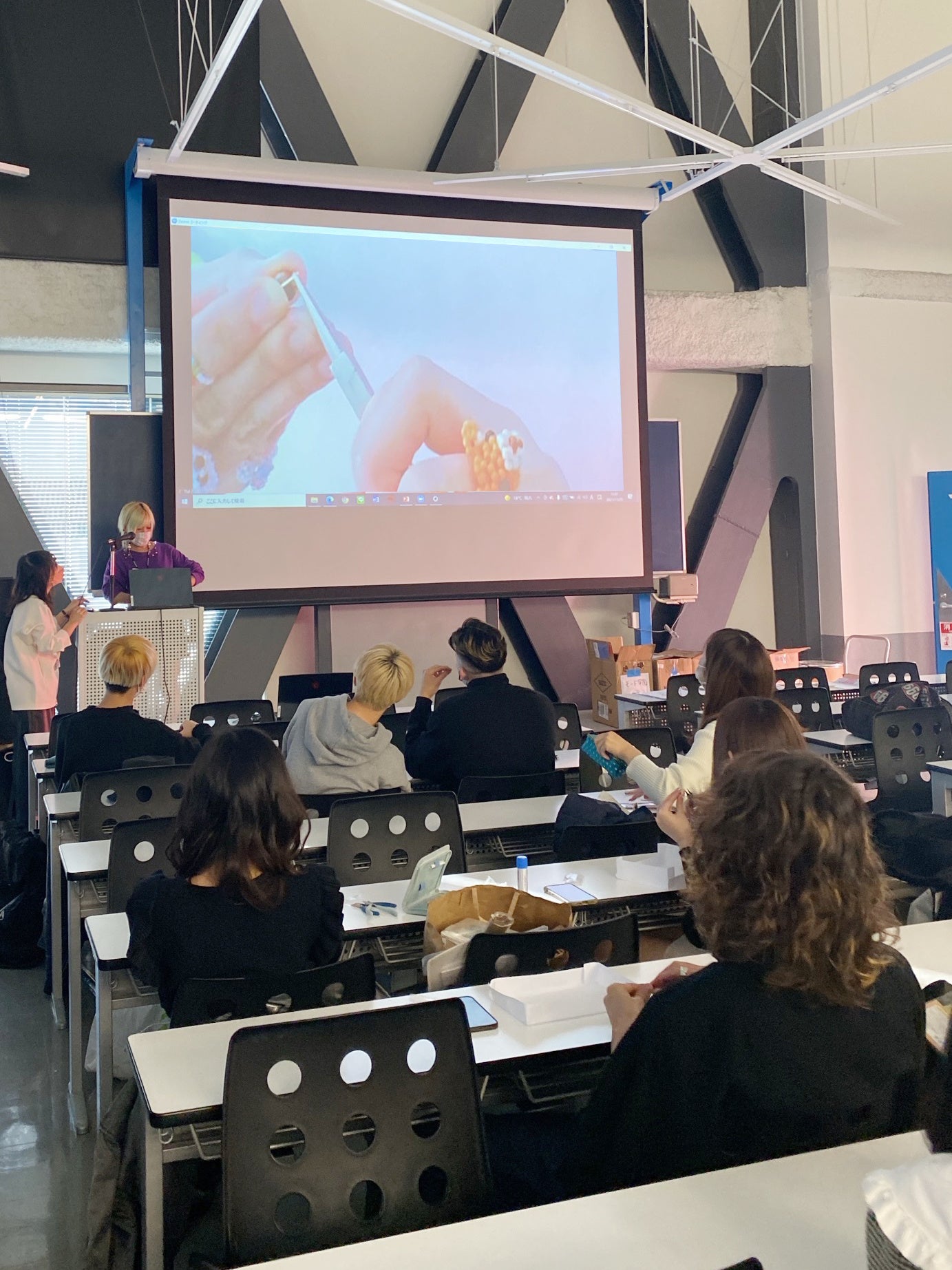 提供したリサイクルビーズ/パーツを使用したアクセサリー作品の制作課題を出すにあたり、アクセサリー制作の専門知識を持つPARTS CLUBのスタッフが講師を務める授業を実施しました。