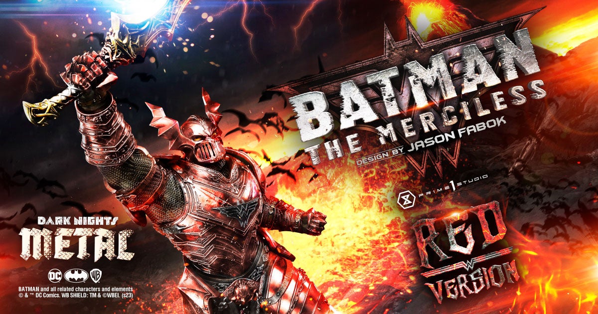 DCコミックス『ダークナイツ:メタル』より、悪のダークナイト「マーシレス」が深紅の限定カラーで登場