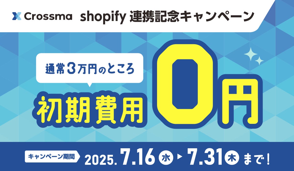 株式会社IZUMI(本社:東京都中央区京橋、代表:藤本卓治)が提供する「クロスマ」は、Shopifyとの新たな連携を記念し、2025年7月31日までの期間限定で初期費用が無料になるキャンペーンを実施いたします。