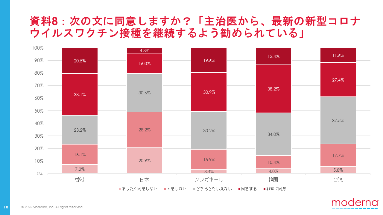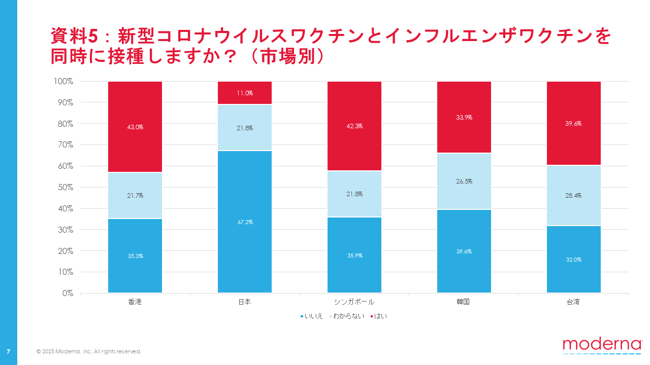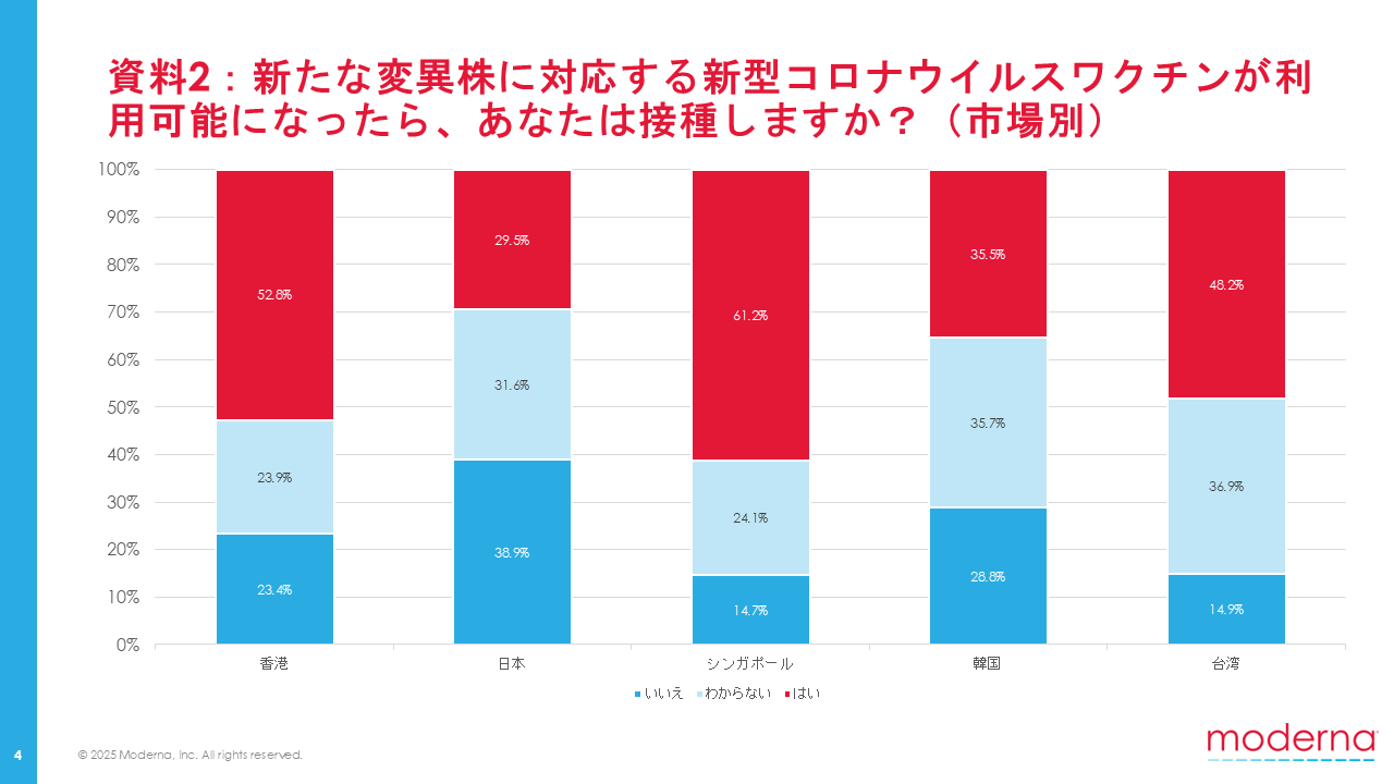 2025年モデルナ調査、日本の新型コロナワクチン接種意向はアジアで依然最低水準