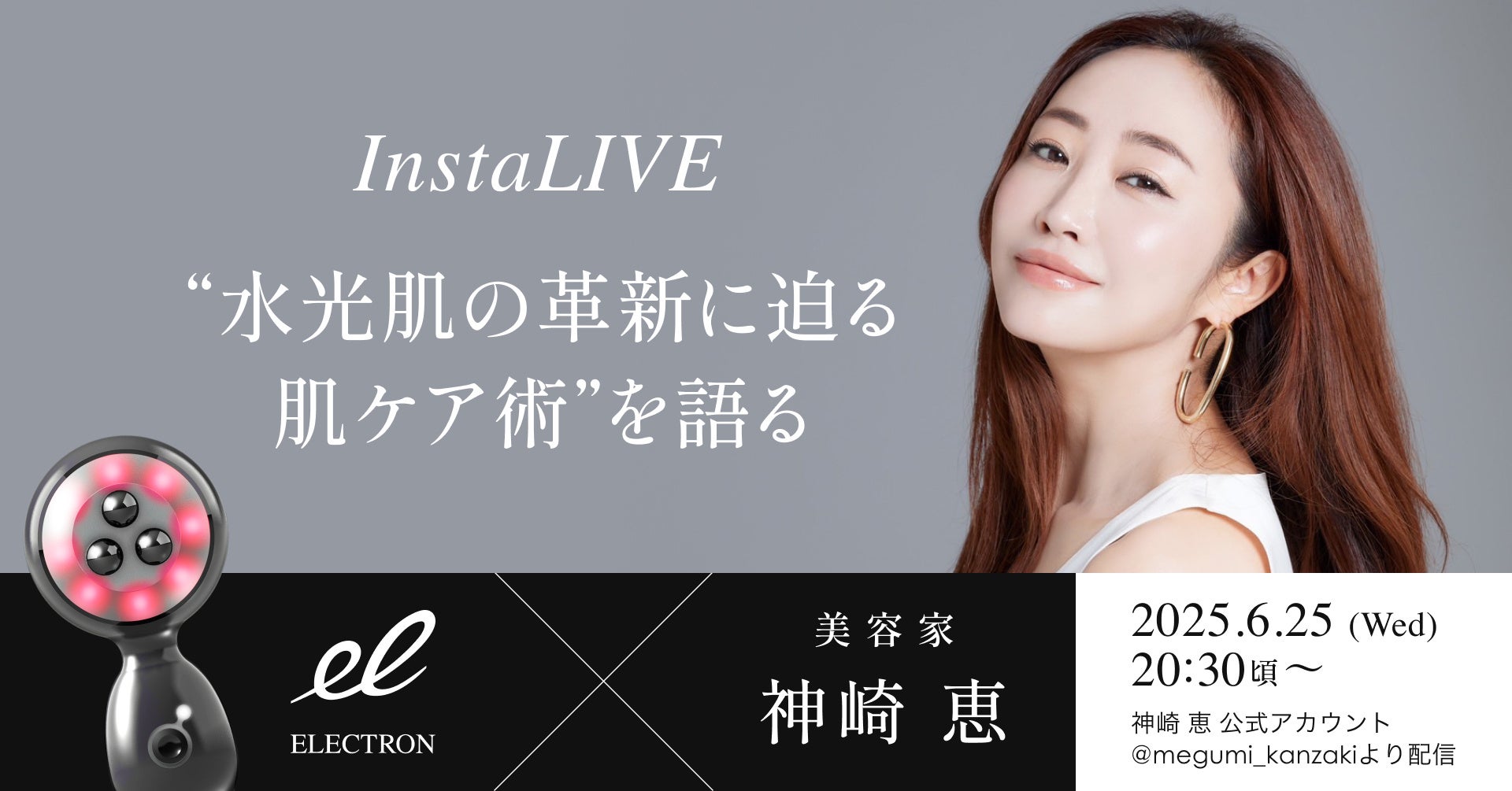『ELECTRON(エレクトロン)』ブランドを展開する有限会社GMコーポレーション(本社:大阪市、代表取締役:辰巳祐子)は、2025年6月25日(水)20:30頃~より美容家 神崎恵さんによるコラボインスタライブを配信いたします。