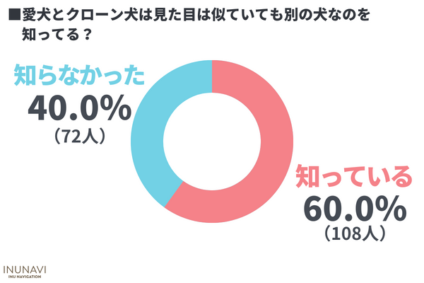 ・愛犬とクローン犬は別の犬だということを「知っている」飼い主は60.0%いたが、まったく同じ犬ができると思っている飼い主が40.0%もいた。