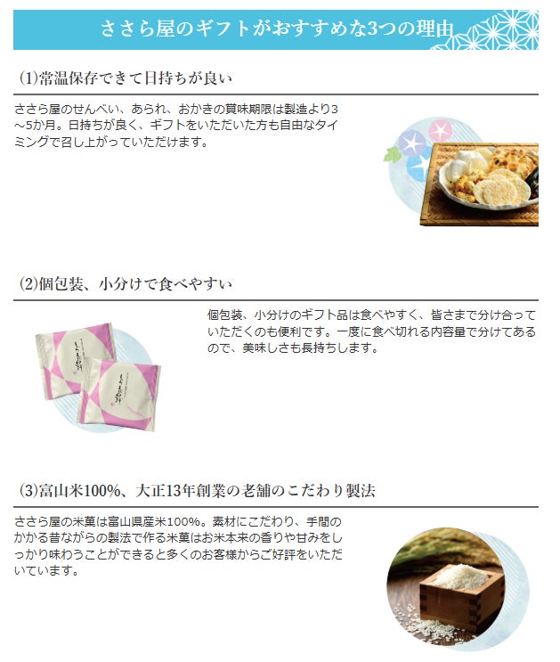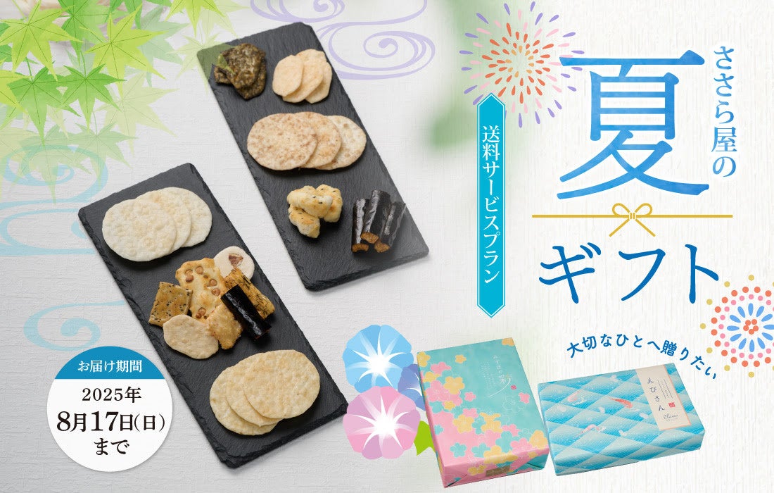 創業101年の老舗米菓メーカー日の出屋製菓産業株式会社(本社:富山県南砺市、代表取締役社長:川合洋平)が展開するささら屋は、2025年お中元向けの夏ギフト商品を発売しました。