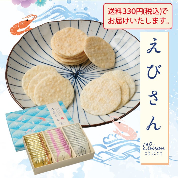 ささら屋人気の3種類のえびせんべいを詰合せした新商品「えびさん」や定番ギフト米菓も送料サービスでお届けします!