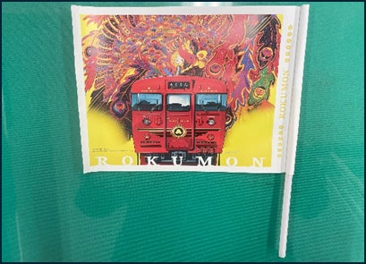 ろくもん絵柄や上田れむとみつどんが描かれている牟礼駅駅名標の手旗を作って、一緒にお出迎えしませんか?