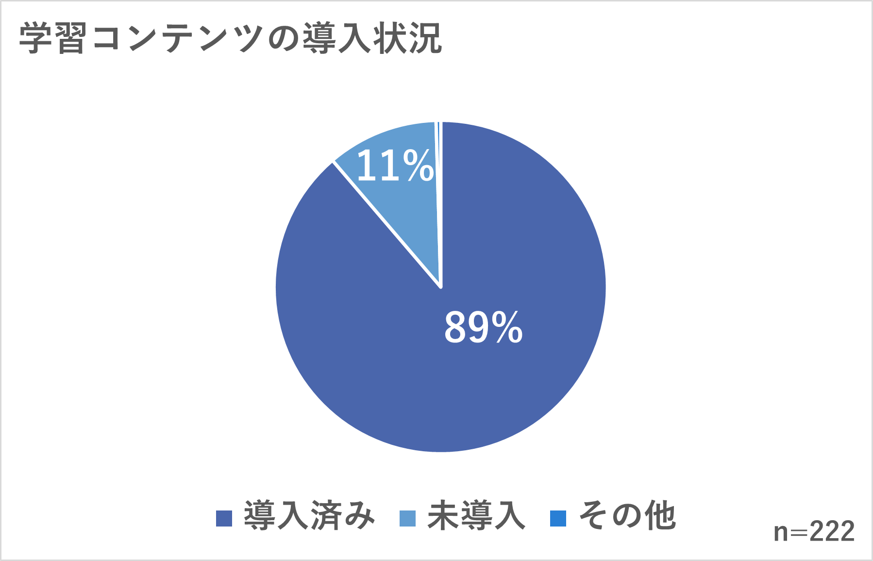 222自治体に学習コンテンツの導入状況を聞いたところ、導入していると答えたのは197自治体(89%)、導入していないが24自治体(11%)。 (n=222)