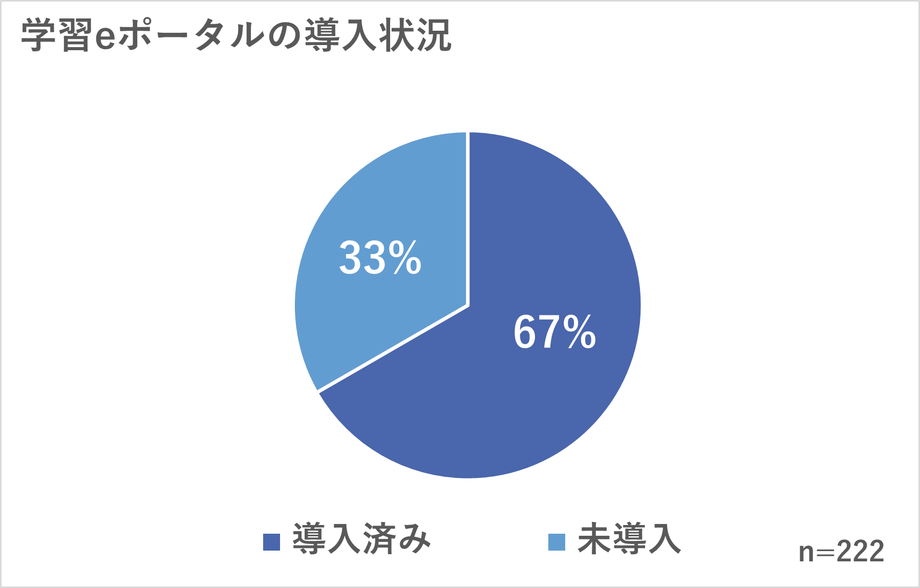 222自治体に学習eポータルの導入状況を聞いたところ、導入していると答えたのは148自治体(67%)、導入していないが74自治体(33%)。(n=222)