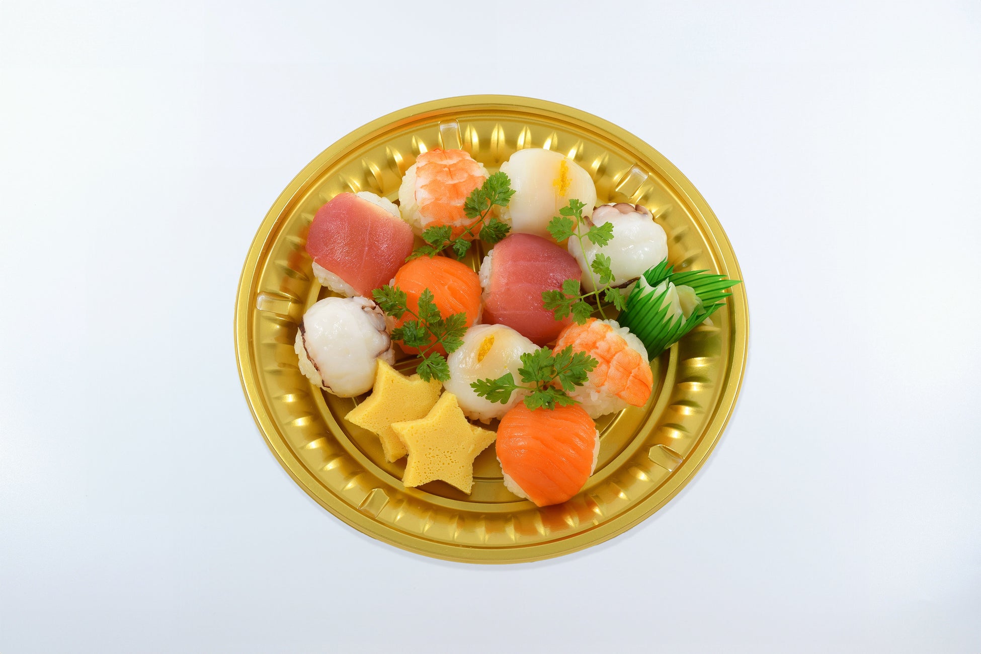 ◯商品説明:サーモン・金目鯛・ズワイガニなど、7種のてまり寿司を彩り豊かに盛り込んだ華やかな