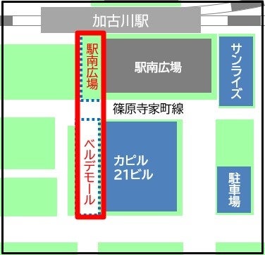 兵庫県加古川市(市長:岡田康裕)は、本年度も加古川駅周辺のにぎわいの創出、回遊性の向上や滞在空間の創出を目的とした社会実験を実施いたします。今年は加古川駅南広場だけでなく、ベルデモール商店街の一部までエリアを広げて、ベンチテーブル等のストリートファニチャーを設置します。また、ベルデモール商店街の一部を歩行者天国化したイベントなども実施します。