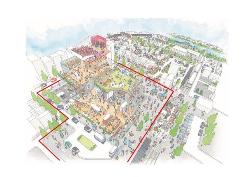 加古川市では、本市の都心として重要な役割を担う加古川駅周辺地区について、再整備による公共空間の再構築をめざしています。今年8月には加古川駅周辺地区の将来像とまちづくりの方向性を示す「加古川駅周辺再整備基本方針」を策定しました。本方針は、駅周辺の施設の老朽化やにぎわいの不足といった課題に対応し 、関係者や地域の方々と連携を図ることで、駅周辺をよりにぎわいのある魅力的な都市空間へと形成していくための指針として策定しています。
