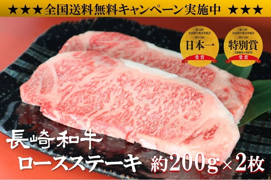 〇 【送料無料】 長崎和牛 ロースステーキ200g×2枚