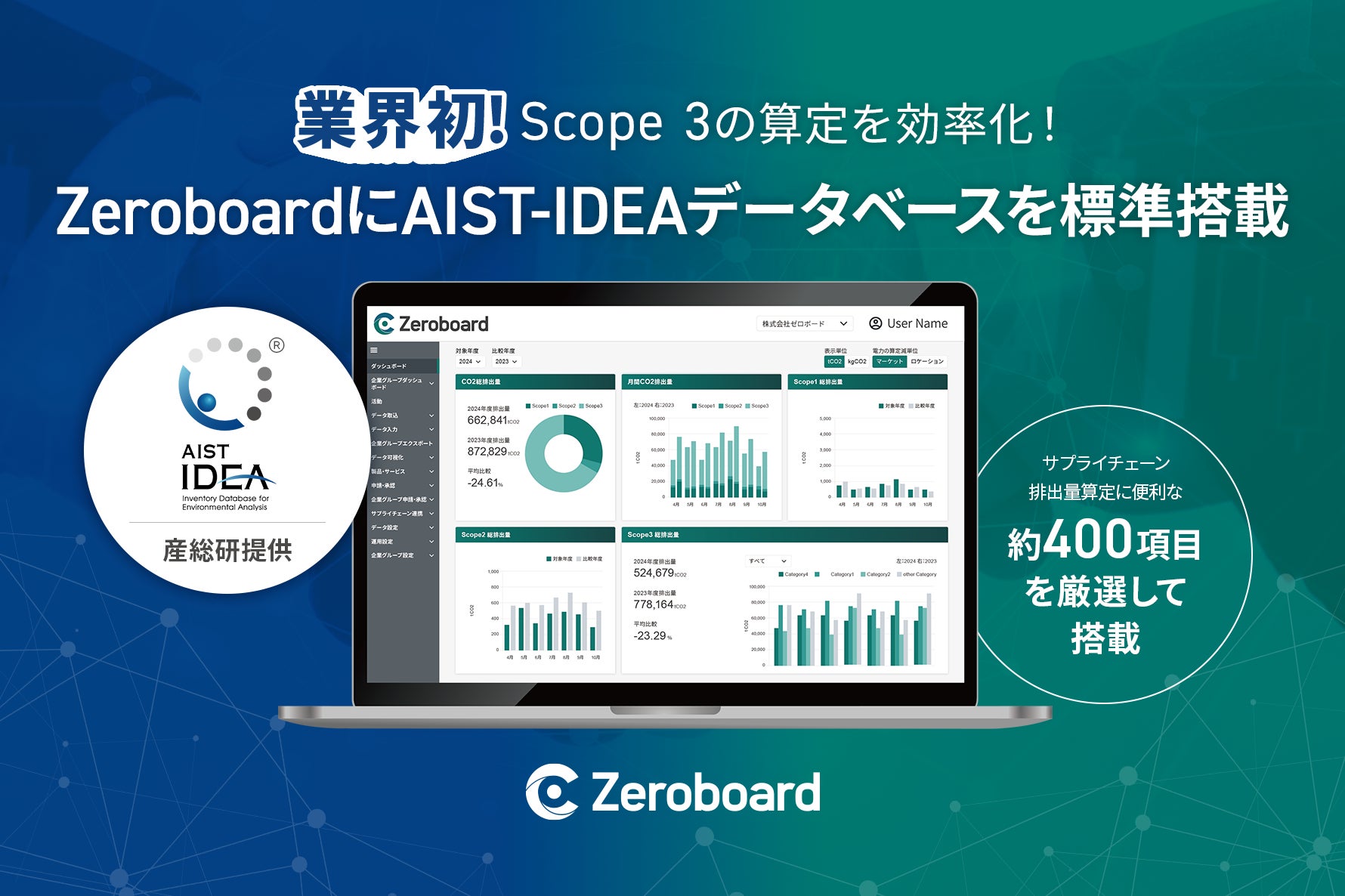 株式会社ゼロボード(東京都港区、代表取締役:渡慶次道隆、以下 当社)は、世界最大級のインベントリデータベースであるAIST-IDEA(以下 IDEA※)を提供する産総研グループの株式会社AIST Solutions(東京都港区、代表取締役 社長CEO:逢󠄀坂清治、以下 AIST Solutions)と業務提携契約を締結しました。