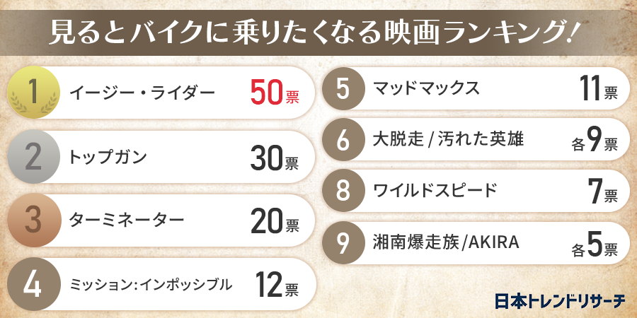 日本トレンドリサーチ・見るとバイクに乗りたくなる映画に関する調査