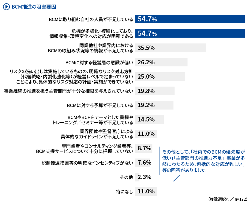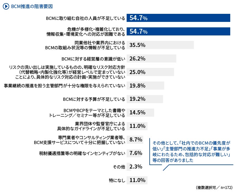 【事業継続マネジメント(BCM)推進の阻害要因】