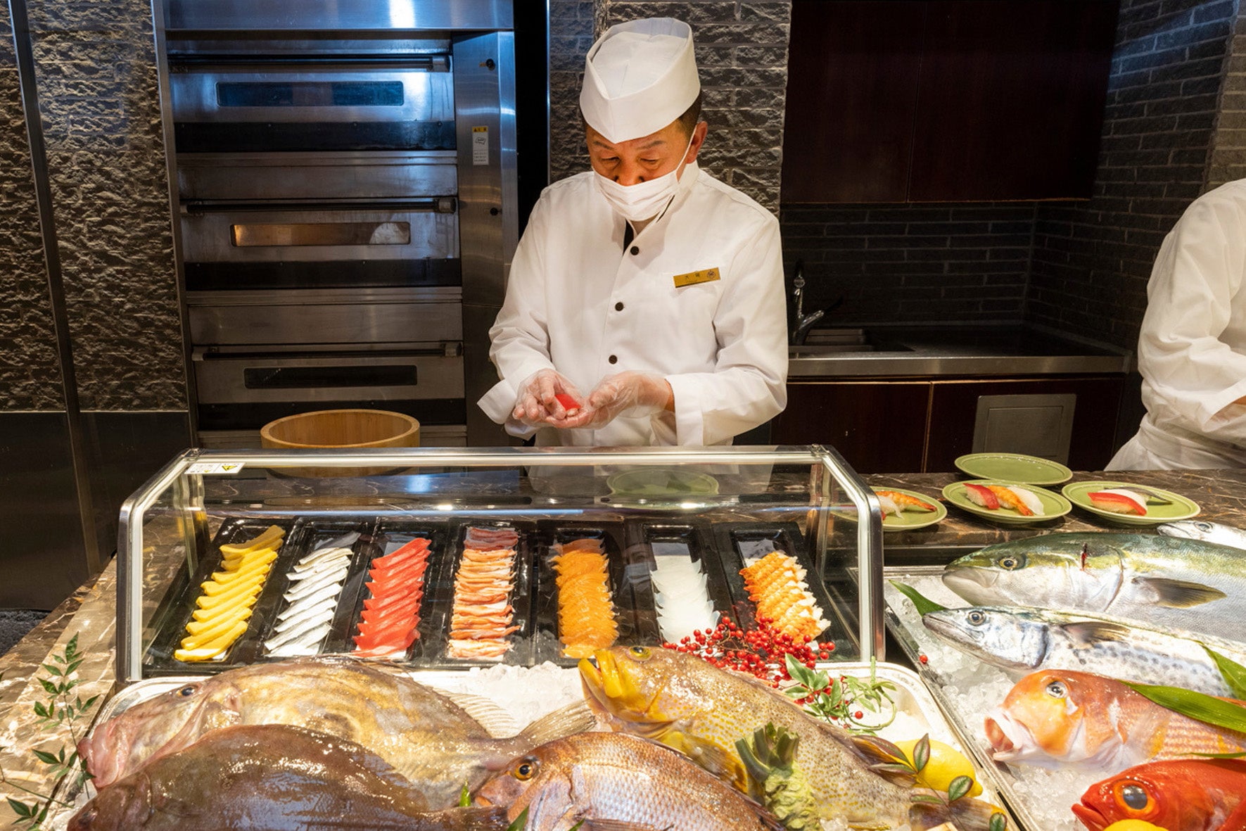 目の前で握る寿司コーナーに富山のネタも登場。漁の状況により提供する魚は日替わりです。