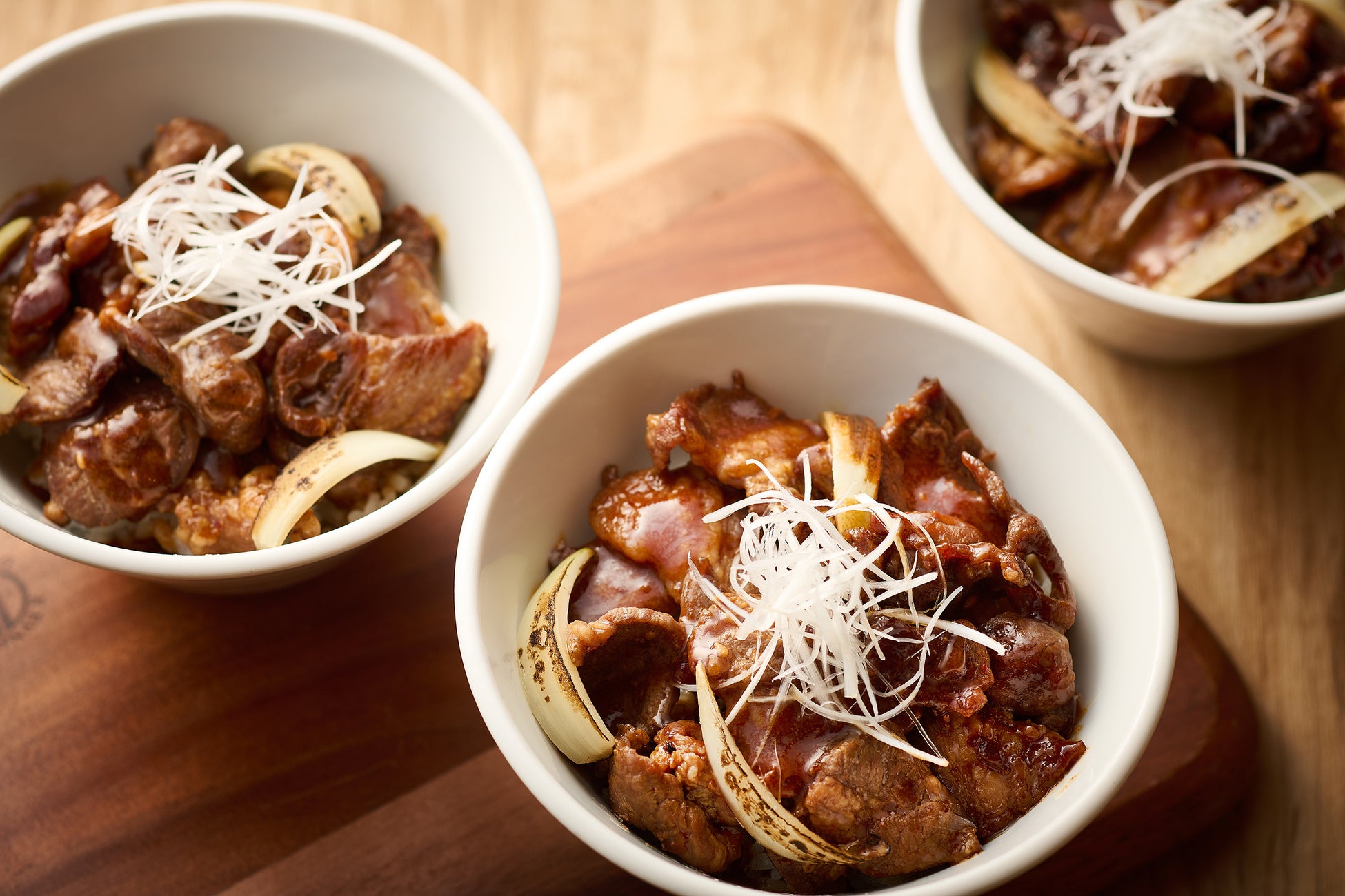 ラム肉と玉ねぎを濃厚タレで味付けした北海道の郷土料理ジンギスカン丼。