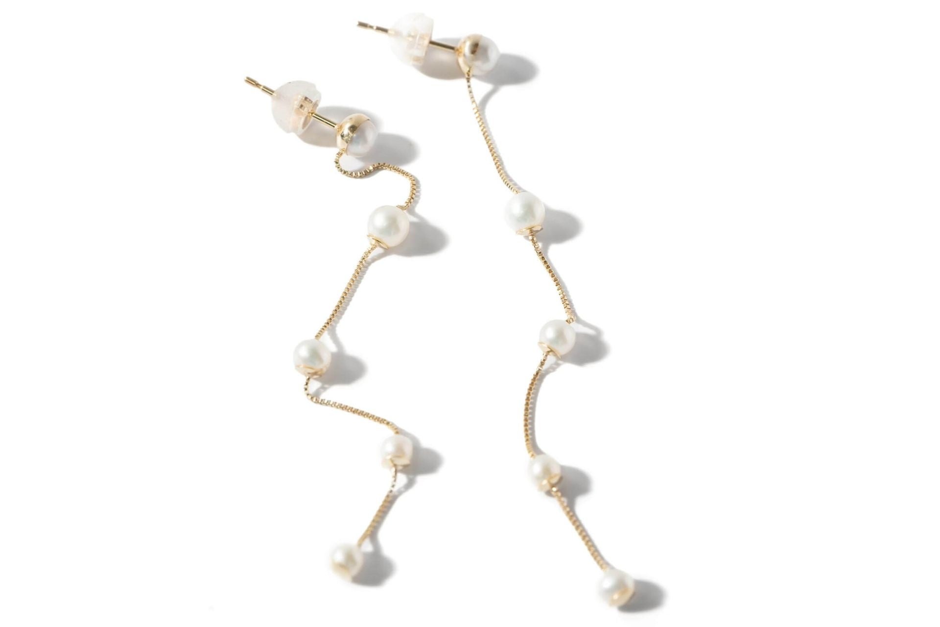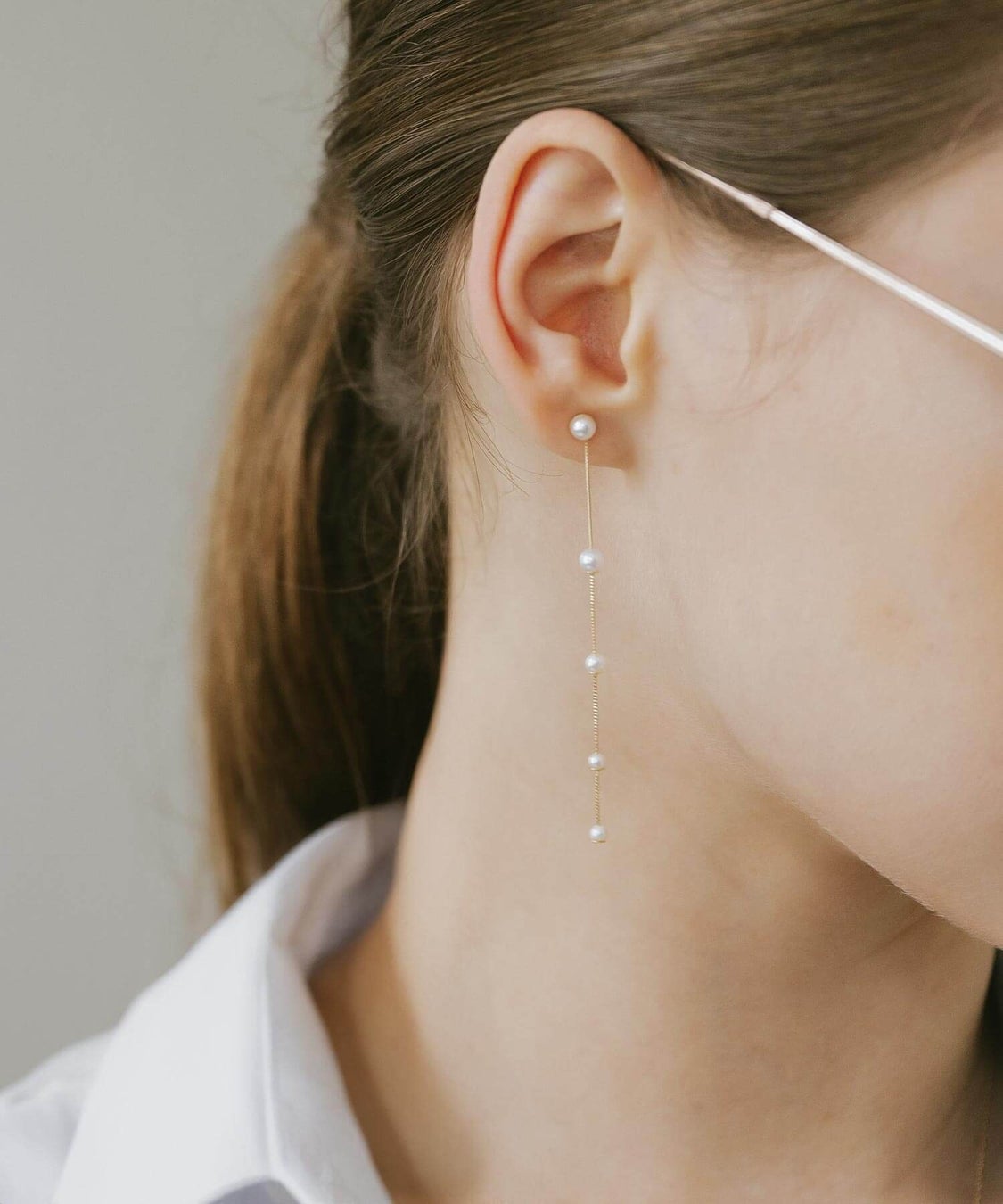 【新作早割】柔らかな揺れる動きでドラマチックな耳元に。日常のコーデを引き立てる淡水パールのチェーンピアス