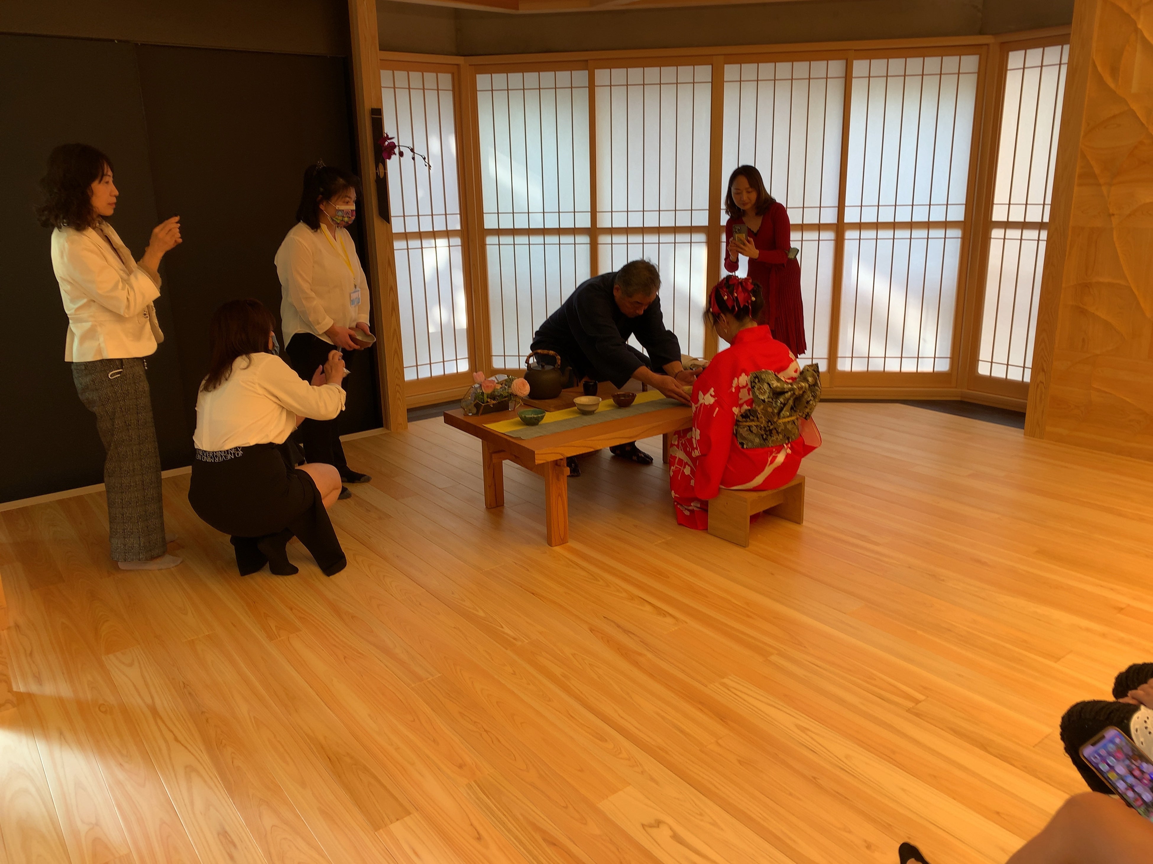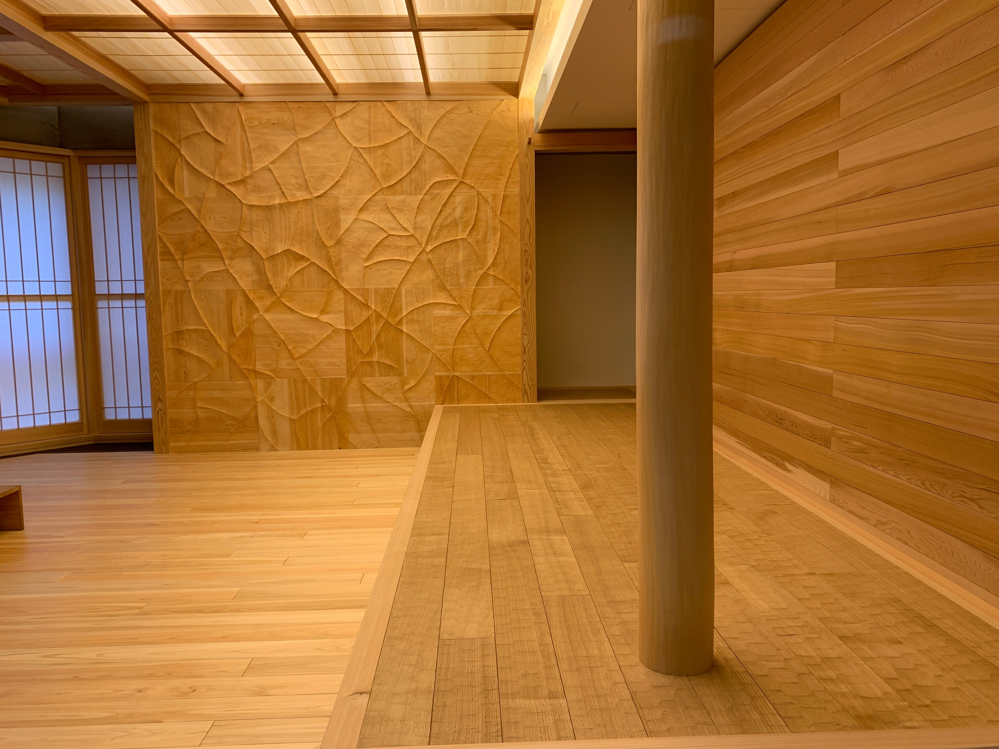 「AWA Gallery」では、多くの参加者が入念に壁、床、指物を観察し、樹種名や使用量、整備費用や期間を施主に質問したり、寝転がってその質感を楽しむなど、大きな関心が寄せられている様子が窺えました。