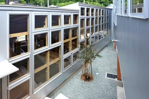「NEMARU PORT」は、釜石の市街中心部に位置し、海や山、そして街のさまざまな施設へのアクセスが良好です。研修プログラムの現場はもちろん、地元の飲食・文化スポットへも、参加者をシームレスにつなぐハブとして機能します。建物はコモンパティオ(共用の中庭)を囲むように回遊性を持たせ、思いがけない場所での出会いや気づきが生まれます。また、グループワーク用の広い研修室、個人作業やリラックスできるスペース、さらにはアウトドアワークショップに対応したエリアなど、幅広いニーズに応える空間構成です。研修参加者同士が空間を共有することで、刺激し合いながら学びを深められるようデザインされています。