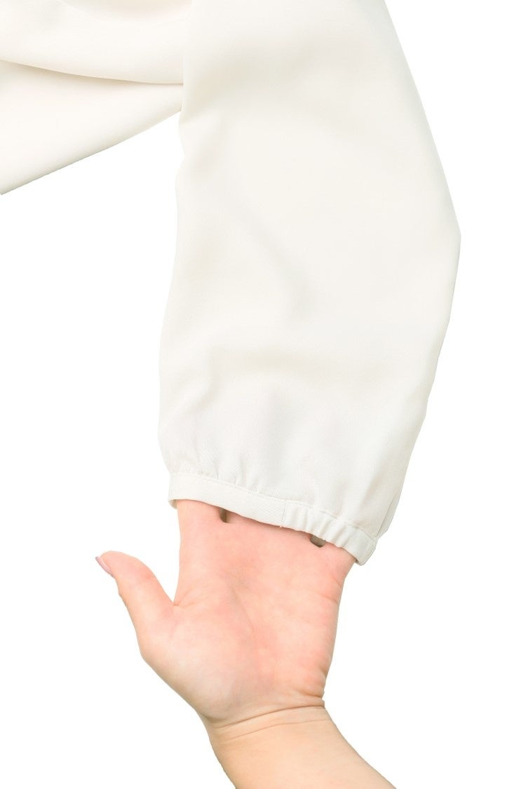 腕時計やアクセサリーがきれいに見える絶妙な袖丈で、ジャケット着用時にブラウスの袖が出にくい設定にしています。また、袖口の内側半分をゴム仕様にすることで便利さと見た目に配慮。