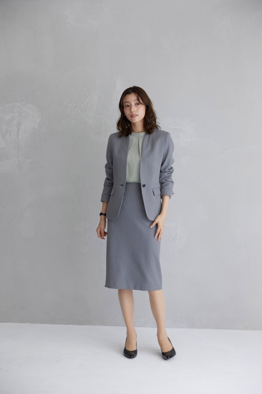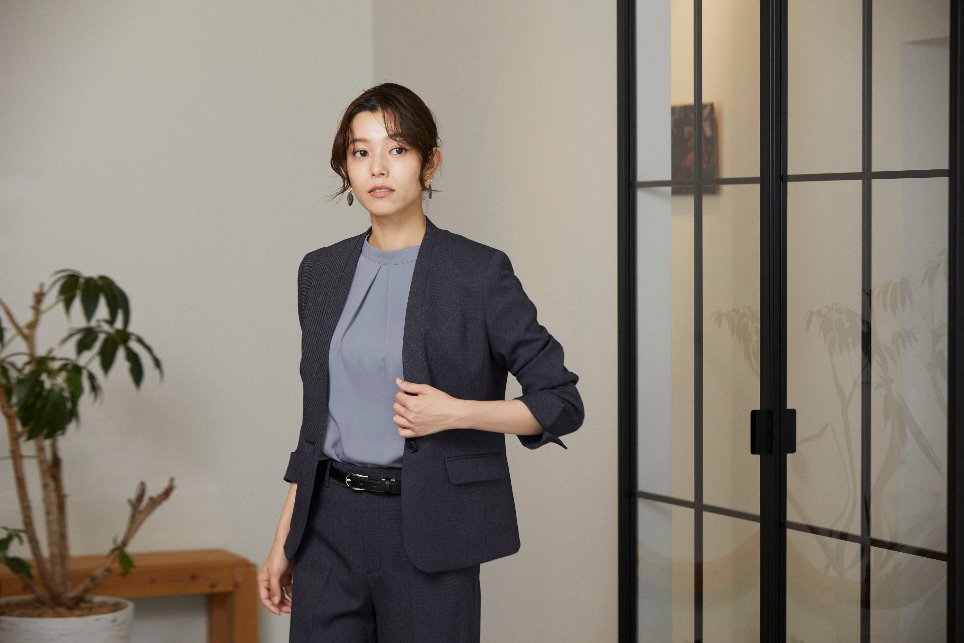 実際にフォロワーの方々からの「ストレッチは欠かせない」「きちんと感がほしい」という声をもとに、ジャケット・スカート・パンツの3アイテムを作製しました。「ジャケット着用時の腕の突っ張り感が気になる」という声から、表地だけでなく袖裏地にもストレッチ素材を採用することで外回りやオフィスワークなど様々なビジネスシーンにおいてストレスなく快適に着用できます。