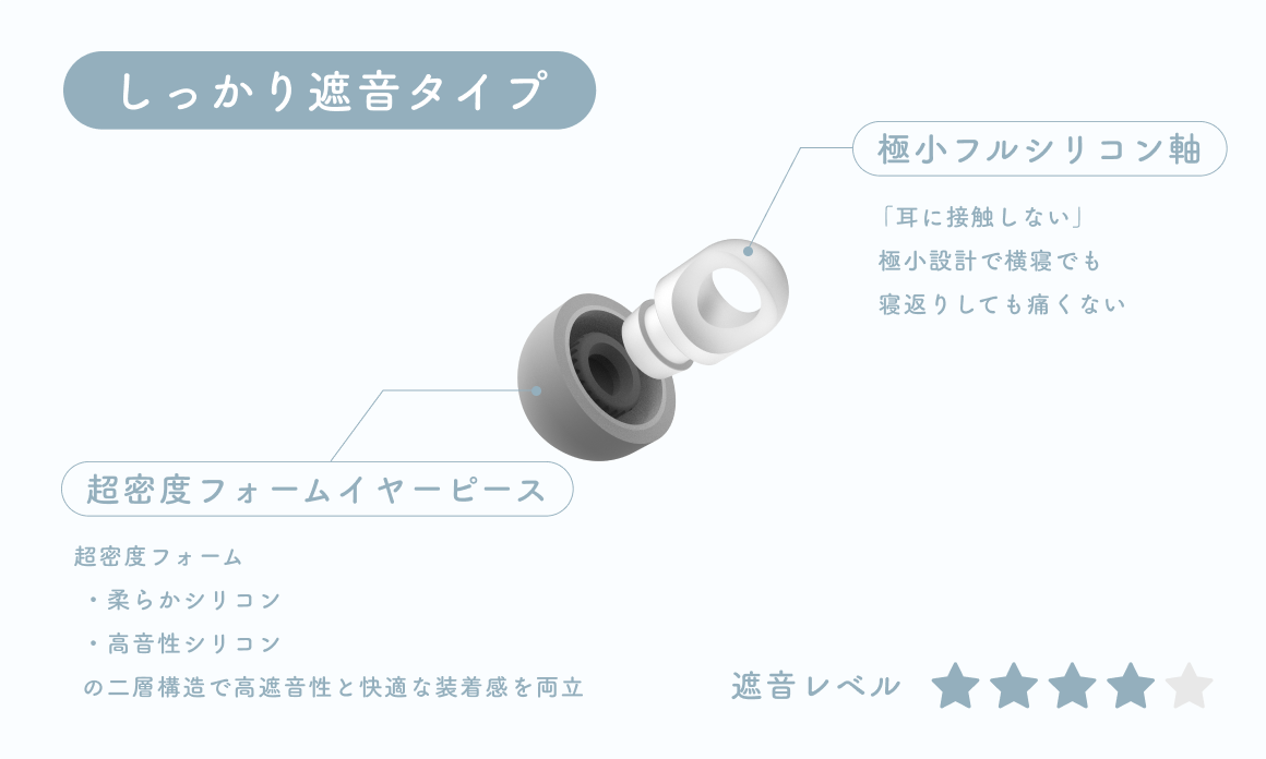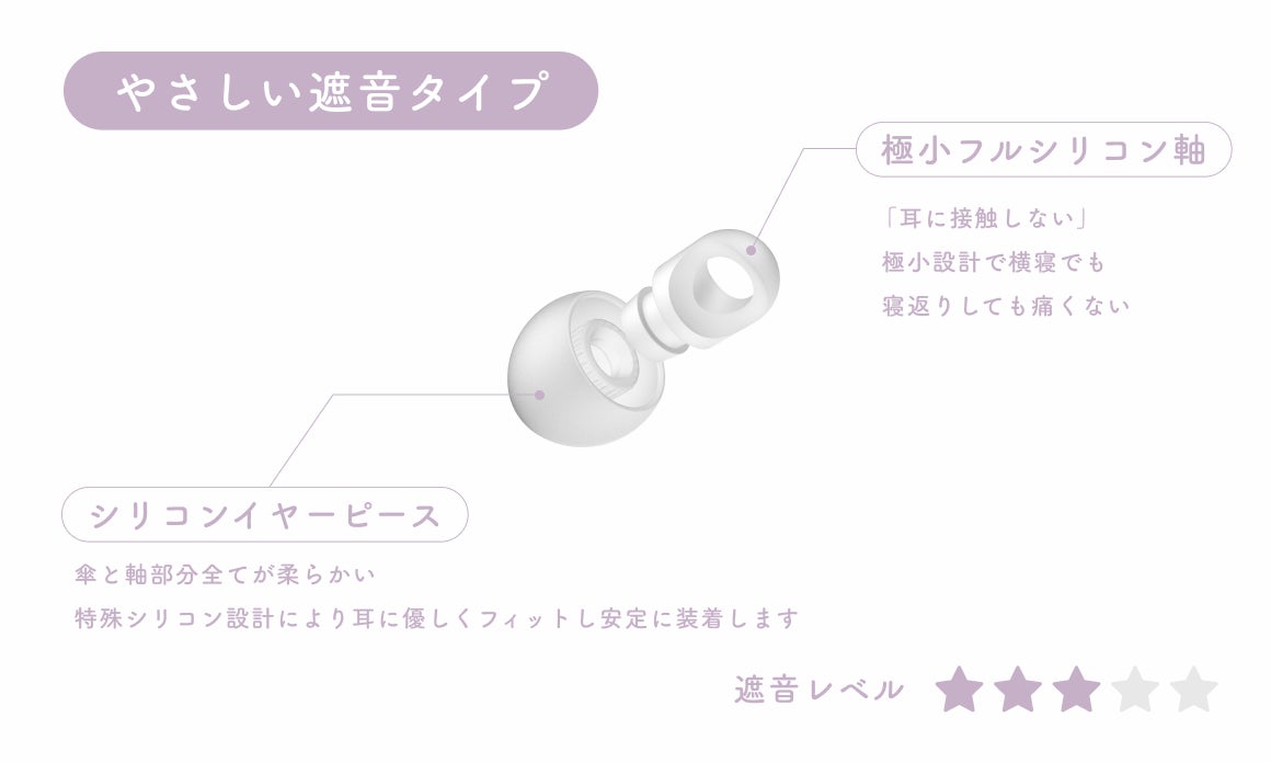 横寝・長時間使用に最適。初めて耳栓を使う方にもおすすめです。