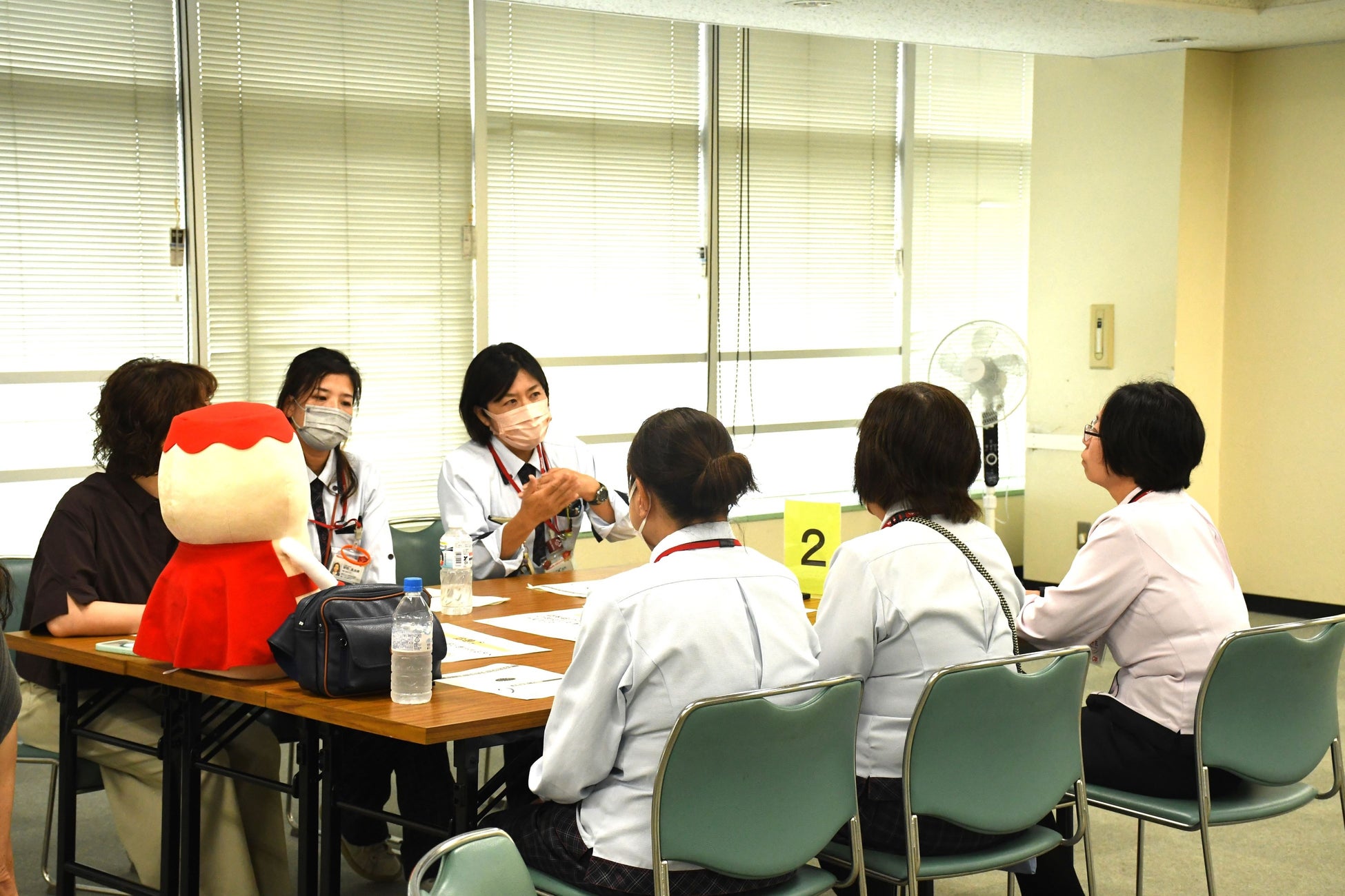 7月11日(金)、区立グリーンホールで開催された座談会には、ヤクルトレディ10名が出席。東京都健康長寿医療センター研究所の岡村毅(おかむら・つよし)医師の講話の後、岡村医師及び同研究所所属の宮前史子(みやまえ・ふみこ)研究員の進行により、ヤクルトレディの方たちから、認知症の方や認知症と思われる方への対応で喜んでもらえたことや、困ったことなどについて話がありました。
