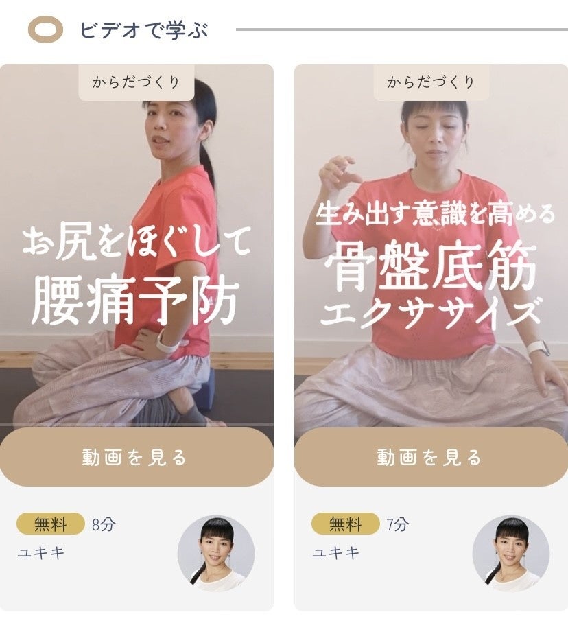 そして、プログラムの7のフェーズでは、「ビデオで学ぶ(無料)」、「記事を読む(無料)」のコンテンツに加えて、実店舗(スタジオ・ヨギー中目黒)でご提供している、熟練のヨガインストラクターと身体機能改善のプロが産後の女性の身体のために開発した専門プログラム「産後のリフレッシュ&リカバリー」(有料)がご選択・ご購入いただけます。