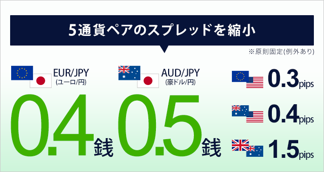 5通貨ペアの基準スプレッドを縮小! 業界最狭水準のスプレッド!