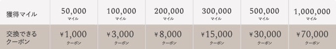 ・マイルをたくさん貯めると、よりお得なクーポンと交換可能に