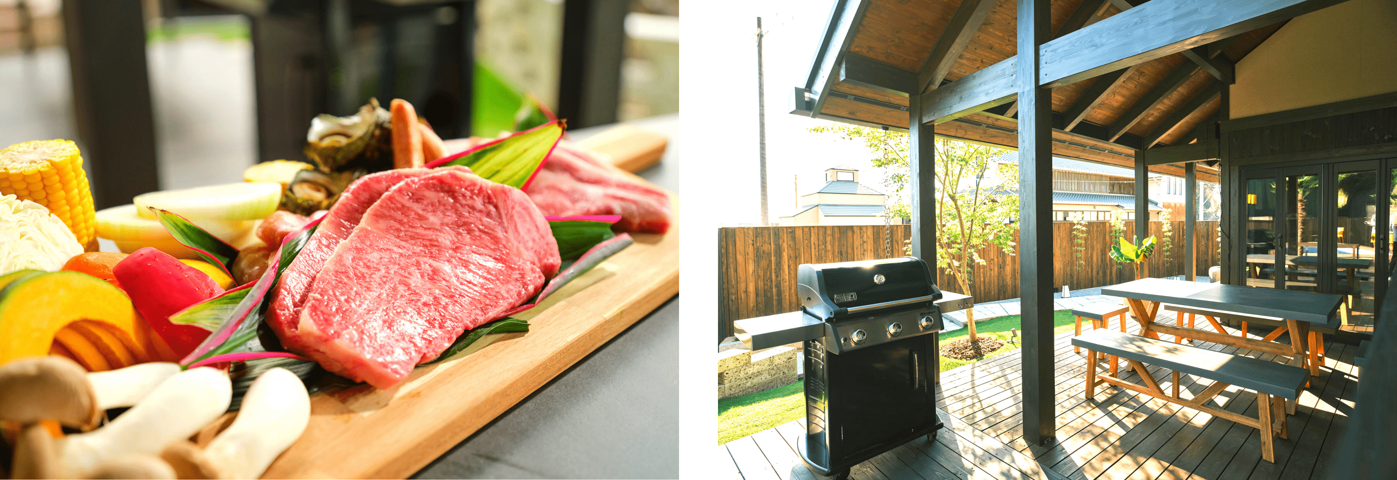 - お食事は「BBQ」と「個室カウンターでお寿司」から選択可能