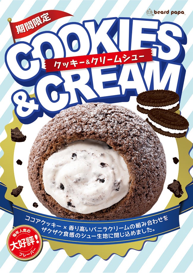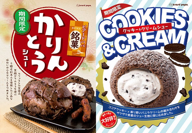 シュークリーム専門店「ビアードパパ」3月のフレーバーは“かりんとうシュー”と“クッキー&クリームシュー”。和菓子派にも洋菓子派にもオススメの2本立て。