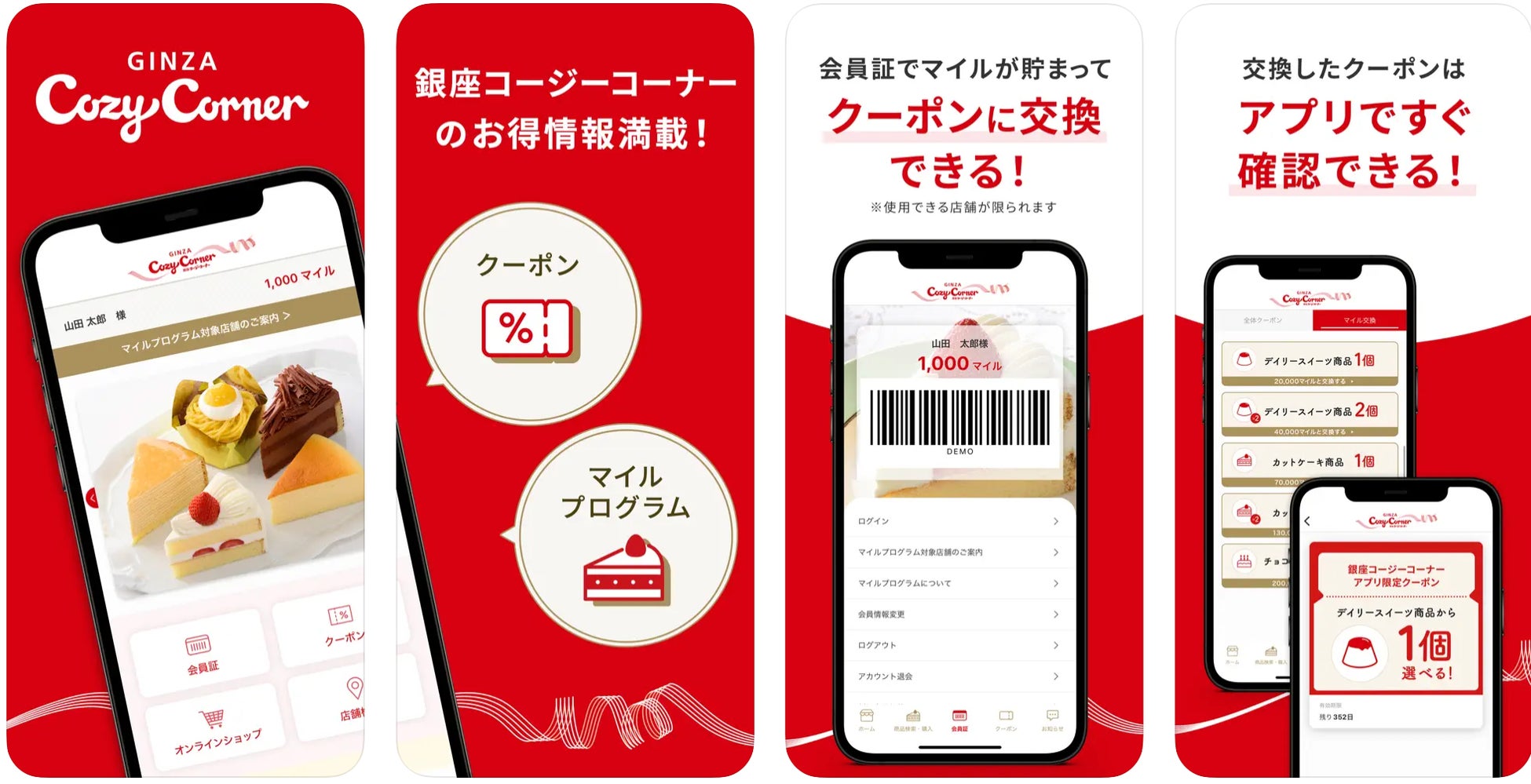 銀座コージーコーナー公式アプリにおける注目ポイントをご紹介します。