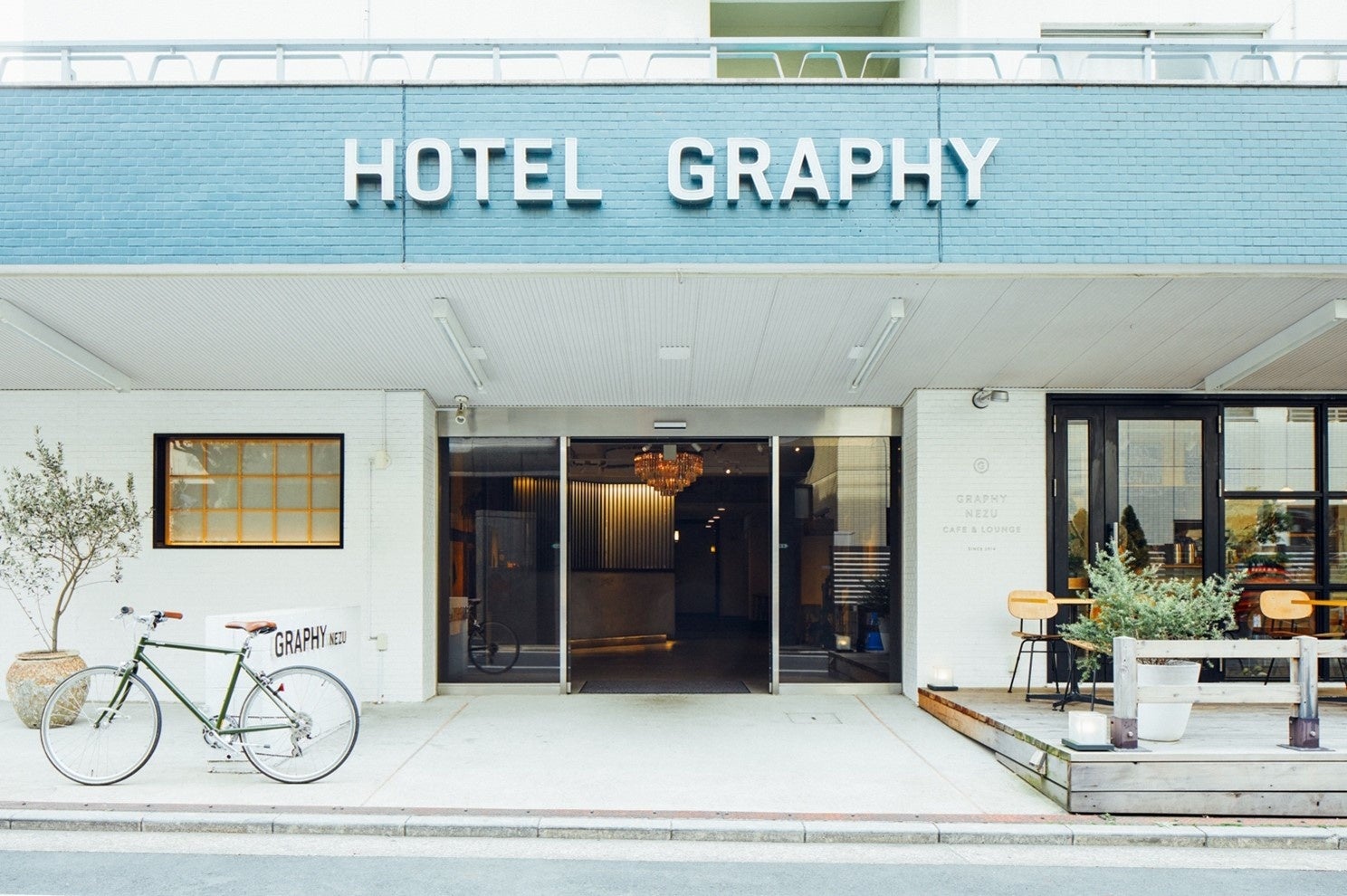HOTEL GRAPHY は、東京都の歴史的中心部であり下町情緒あふれる谷根千の一角に位置し、2013年2月のオープン以来、様々なイベントやワークショップを仕掛け世界中から訪れる旅行客だけでなく地域に暮らすローカルの人々が集まり “交流できるライフスタイルホテル”として親しまれてきました。開業当初、隣人交流型マンション「ソーシャルアパートメント」が併設していたことにより、ホテルでありながらゲストが自由に利用できる共用ラウンジやダイニング、キッチンが備えられており、非日常で過ごす日常、自分らしい滞在を提供しています。ホテルゲストとローカルをゆるくつなぐカフェ&バー、ヨガや展示会など多目的に利用できる畳の敷かれたスタジオは、幅広い世代の利用者に親しまれています。