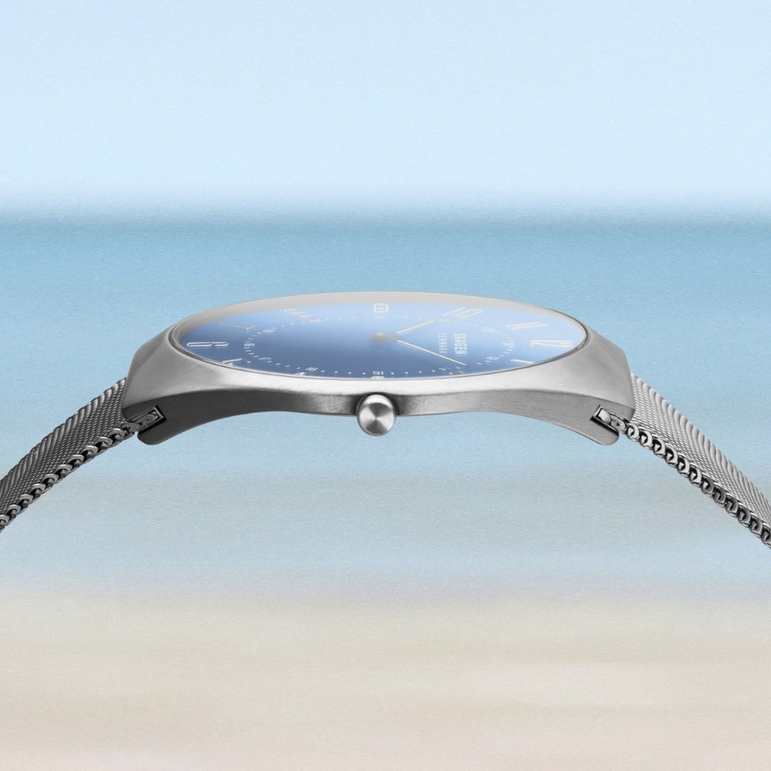 薄型ケースによる高いフィット感をさらに追及し、わずか4.85mmのケース厚に仕上げました。ケースにはリサイクルされたステンレススティールを採用し、風防にはサファイアクリスタルガラスを使用。ミニマルなアラビア数字のインデックスは視認性もよく、デンマーク由来の洗練されたデザインにより男女問わず、コーディネートも幅広く合わせられます。