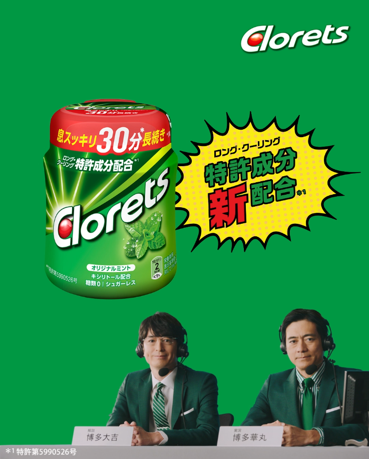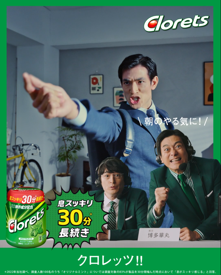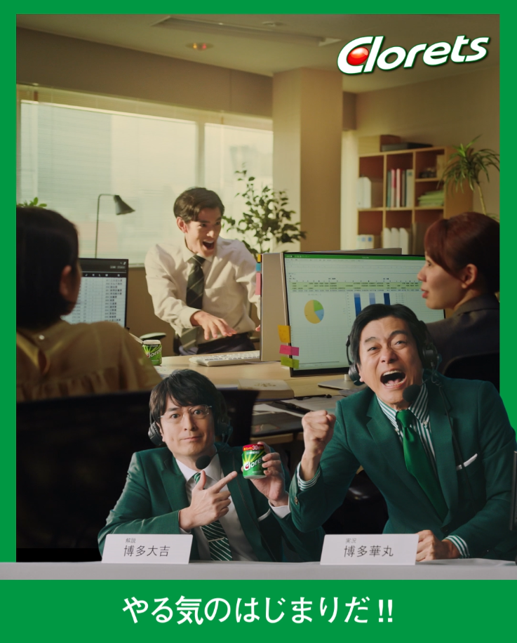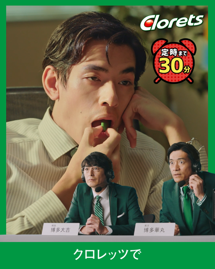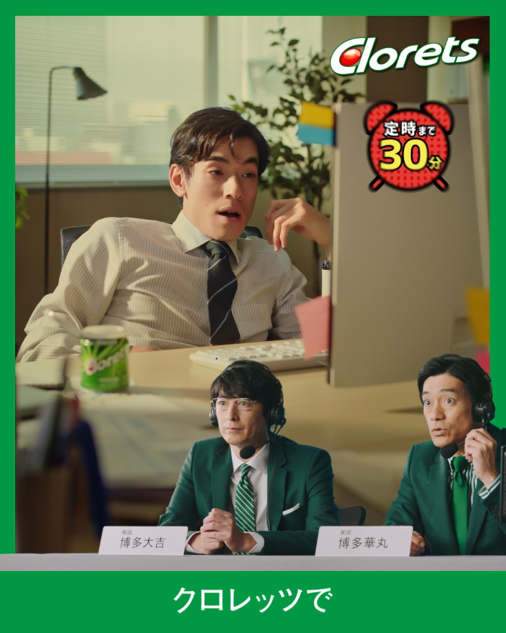 モンデリーズ・ジャパン株式会社(本社:東京都品川区 / 代表取締役社長:福本千秋)は、クロレッツガムの定番フレーバー「オリジナルミント」と「クリアミント」のリニューアルに伴い、博多華丸・大吉さんが出演する新作デジタル広告を、2022年10月3日(月)より配信します。配信開始する今回のデジタル広告は、「朝の身支度」篇、「残業の瀬戸際」篇の二つ。働く人の多くが経験する、やる気の分かれ目となりがちな“あるあるの30分”を描いた「やる気実況シリーズ」の新作です。