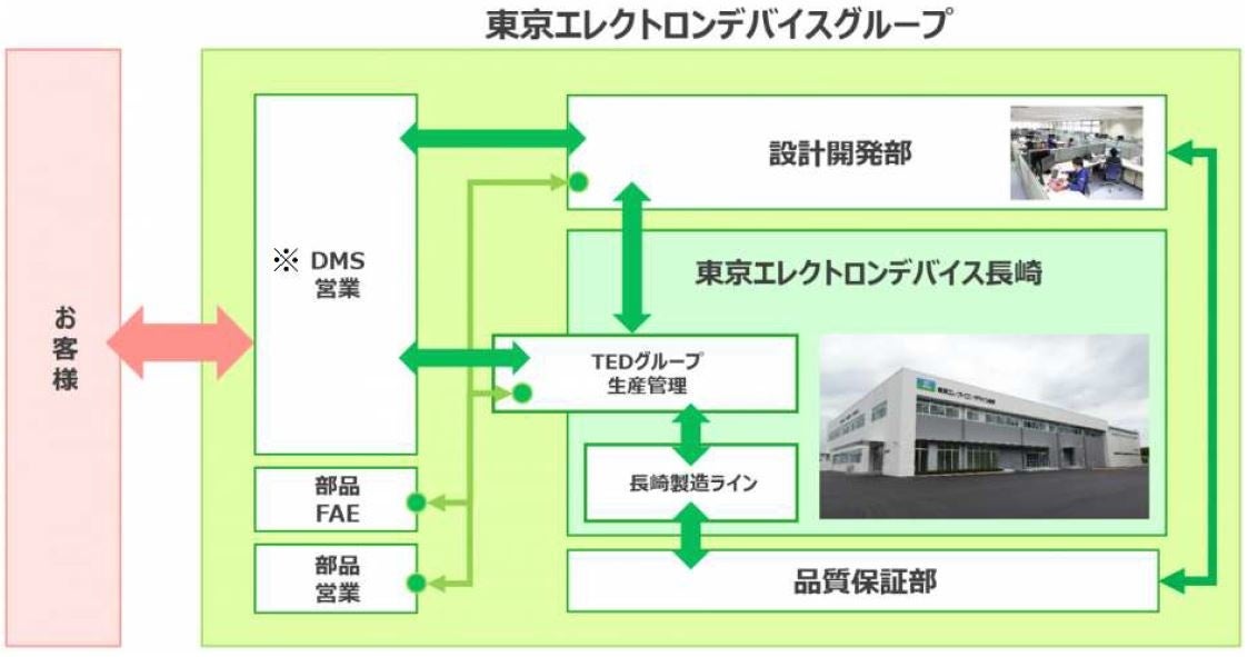 今後は、医療機器製造業登録を行ったエンジニアリングセンター(設計開発部)および自社工場のTED長崎が連動し、これまでの基板単位での設計・受託量産に加え、超音波診断装置、MRI、X線検査装置などの画像診断装置や血液検査などの検体検査装置のODM供給までをワンストップで提供する開発・製造体制を強化します。