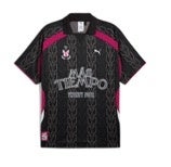 このコレクションは、サッカーにインスパイアされたシルエットとグラフィックが特徴で、メタリックシルバーやマゼンタのカラーリング、リフレクティブディテールなどのアクセントがテクニカルな素材と組み合わされています。SkeptaとJammer(ジャマー)の指揮のもと、Más Tiempoはプーマと協力し、Tシャツやフーディーに使用される様々なオリジナルグラフィックデザインを考案しました。Más Tiempoのロゴと「World Tour」のテキストは、ウーブンショートパンツ、ハーフジップトラックトップ、フットボールジャージなどにあしらわれています。さらに、ボディバッグや5パネルキャップなどのアクセサリーは、フェスティバルシーズンを意識したデザインになっています。